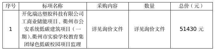 開化瑞達(dá)塑膠科技有限公司工商業(yè)儲能項(xiàng)目、衢州市公安系統(tǒng)低碳建筑項(xiàng)目(一期)、衢州市實(shí)驗(yàn)學(xué)校教育集團(tuán)綠色低碳校園項(xiàng)目監(jiān)理中標(biāo)結(jié)果公告(非政府采購)