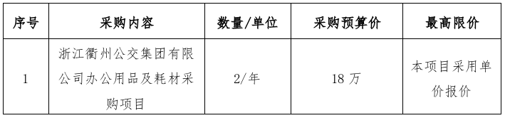 二、項目名稱:浙江衢州公交集團有限公司辦公用品及耗材采購項目