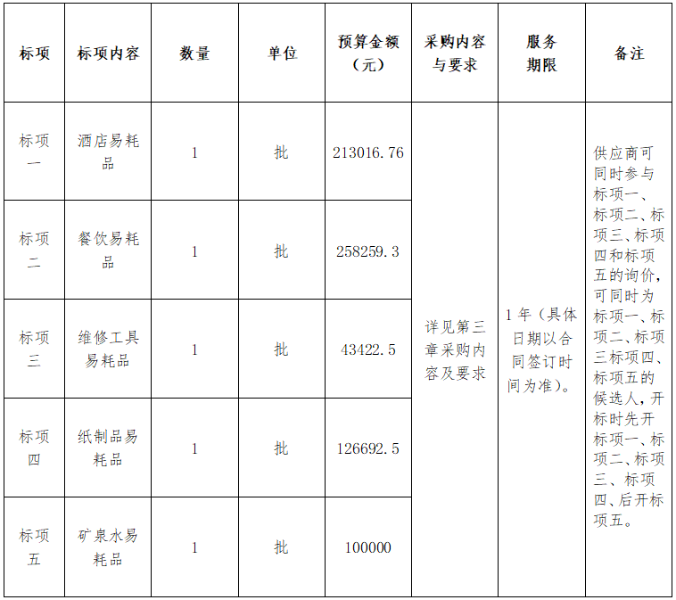 注:本項(xiàng)目的詢價(jià)文件須分標(biāo)項(xiàng)一、二、三、四、五分別制作。