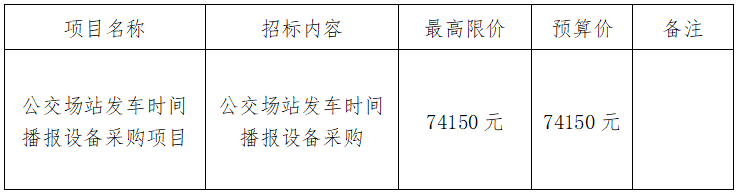 受浙江衢州公交集團有限公司委托,現(xiàn)就公交場站發(fā)車時間播報設(shè)備采購項目進行采購。本項目以詢價方式進行采購,歡迎合格的供應(yīng)商參加。