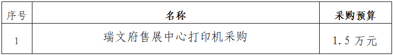 一、采購(gòu)項(xiàng)目名稱(chēng):瑞文府售展中心打印機(jī)詢(xún)價(jià)采購(gòu)項(xiàng)目