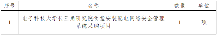 一、采購項目名稱:電子科技大學長三角研究院食堂安裝配電網絡安全管理系統(tǒng)采購項目