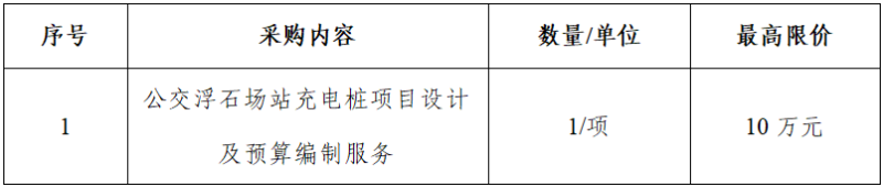 一、項(xiàng)目名稱:公交浮石場(chǎng)站充電樁項(xiàng)目設(shè)計(jì)及預(yù)算編制服務(wù)詢價(jià)