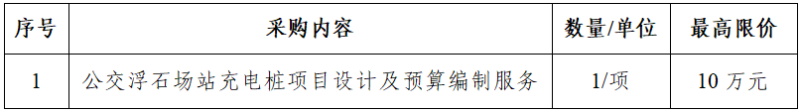 一、采購(gòu)項(xiàng)目名稱:公交浮石場(chǎng)站充電樁項(xiàng)目設(shè)計(jì)及預(yù)算編制服務(wù)