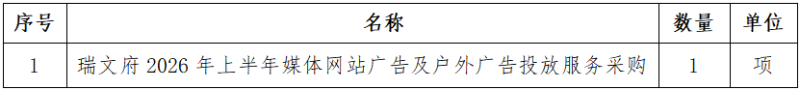 一、采購項目名稱:瑞文府2026年上半年媒體網(wǎng)站廣告及戶外廣告投放服務(wù)采購