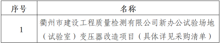一、采購項目名稱:衢州市建設(shè)工程質(zhì)量檢測有限公司新辦公試驗場地(試驗室)變壓器改造項目