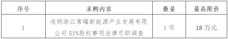二、項目名稱:收購浙江常曜新能源產(chǎn)業(yè)發(fā)展有限公司51%股權(quán)事項法律盡職調(diào)查