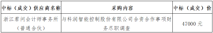 五、采購(gòu)內(nèi)容:與科潤(rùn)智能控制股份有限公司合資合作事項(xiàng)財(cái)務(wù)盡職調(diào)查。
