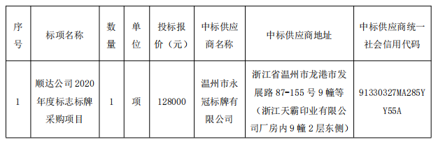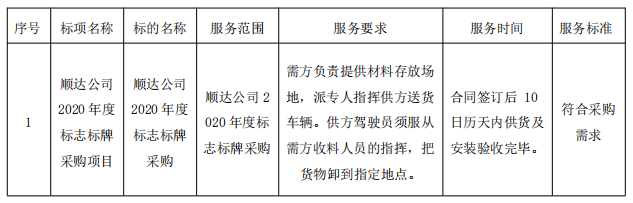 二、項目名稱:順達(dá)公司2020年度標(biāo)志標(biāo)牌采購項目