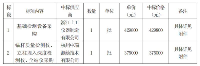 標(biāo)段1中標(biāo)供應(yīng)商:浙江土工儀器制造有限公司,地點(diǎn):浙江省紹興市上虞區(qū)道墟街道工業(yè)區(qū)。
