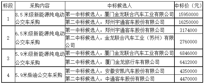 根據(jù)《中華人民共和國招標投標法》等有關法律法規(guī)的規(guī)定,衢州市產(chǎn)權交易中心有限公司受浙江衢州公交集團有限公司委托,對其浙江衢州公交集團有限公司公交車采購項目采用公開招標方式進行采購。衢州市產(chǎn)權交易中心有限公司于2021年5月6日9時30分在衢州市柯城區(qū)芹江東路288號衢時代創(chuàng)新大廈3號樓負一樓西側(衢州市產(chǎn)權交易中心有限公司)1號開標廳開標。評標結果及相關事宜現(xiàn)公示如下: