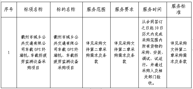二、項目名稱:衢州市城鄉(xiāng)公共交通有限公司車載GPS終端機、車載防疲勞監(jiān)測設備采購項目