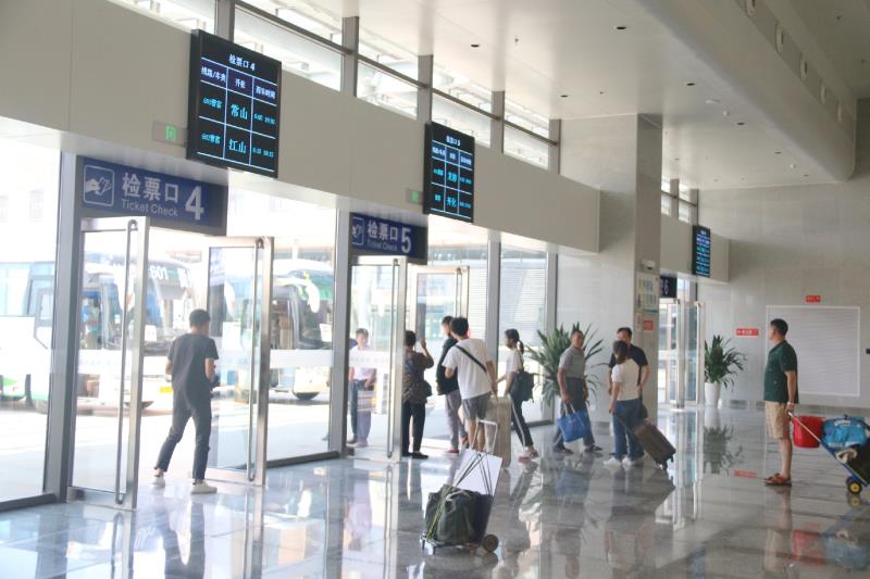 城鄉(xiāng)/城際公交候車大廳位于市綜合客運(yùn)樞紐地上二層西側(cè),大廳內(nèi)共設(shè)置了6個檢票口,近170個座位可供乘客在候車時休息。