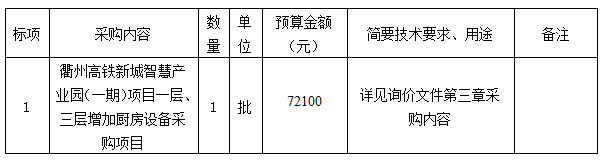 附件:衢州高鐵新城智慧產(chǎn)業(yè)園(一期)項目一層、三層增加廚房設(shè)備采購項目