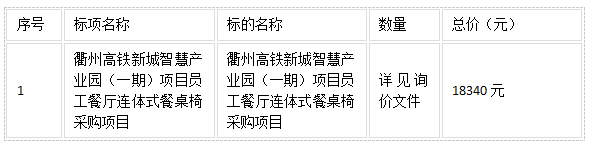 二、項(xiàng)目名稱:衢州高鐵新城智慧產(chǎn)業(yè)園(一期)項(xiàng)目員工餐廳連體式餐桌椅采購項(xiàng)目
