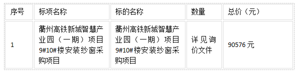 二、項(xiàng)目名稱:衢州高鐵新城智慧產(chǎn)業(yè)園(一期)項(xiàng)目9#10#樓安裝紗窗采購項(xiàng)目