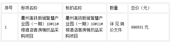 衢州高鐵新城智慧產(chǎn)業(yè)園(一期)10#11#樓酒店客房棉織品采購項目中標結果公告