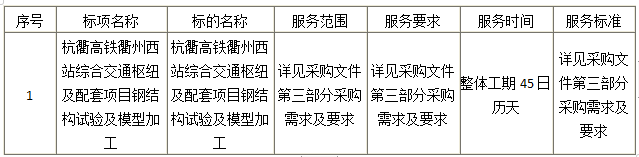 二、項(xiàng)目名稱:杭衢高鐵衢州西站綜合交通樞紐及配套項(xiàng)目鋼結(jié)構(gòu)試驗(yàn)及模型加工