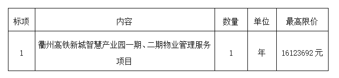 項(xiàng)目名稱:衢州高鐵新城智慧產(chǎn)業(yè)園一期、二期物業(yè)管理服務(wù)項(xiàng)目