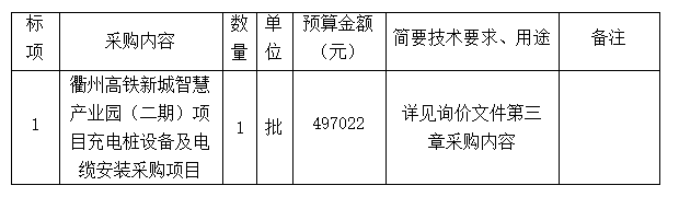 附件1:衢州高鐵新城智慧產(chǎn)業(yè)園(二期)項(xiàng)目充電樁設(shè)備及電纜安裝采購(gòu)詢價(jià)文件