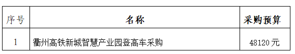 一、采購(gòu)項(xiàng)目名稱:衢州高鐵新城智慧產(chǎn)業(yè)園登高車采購(gòu)。