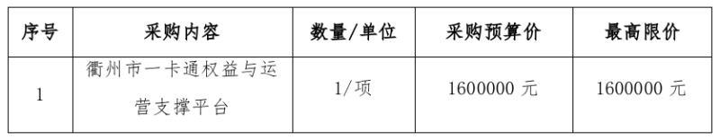 衢州市一卡通權(quán)益與運(yùn)營(yíng)支撐平臺(tái)項(xiàng)目的招標(biāo)公告