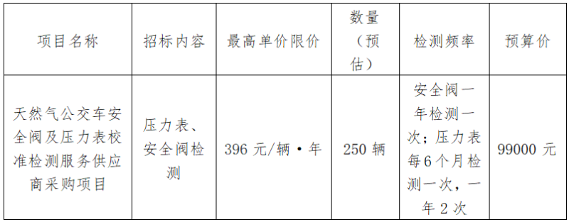 天然氣公交車安全閥及壓力表校準(zhǔn)檢測服務(wù)供應(yīng)商采購項目詢價公告