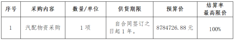根據(jù)《衢州市國(guó)有企業(yè)采購(gòu)管理辦法(試行)》(衢國(guó)資發(fā)〔2020〕36號(hào))等有關(guān)規(guī)定,衢州市兩山工程咨詢管理有限公司受浙江衢州公交集團(tuán)有限公司委托,就浙江衢州公交集團(tuán)有限公司汽配物資采購(gòu)項(xiàng)目進(jìn)行公開招標(biāo),歡迎國(guó)內(nèi)合格的投標(biāo)人前來(lái)投標(biāo)。