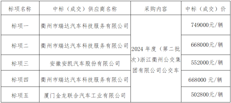 三、標(biāo)項(xiàng)名稱:2024年度(第二批次)浙江衢州公交集團(tuán)有限公司公交車采購項(xiàng)目