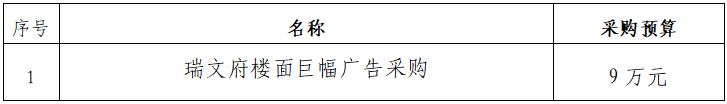 一、采購(gòu)項(xiàng)目名稱:瑞文府樓面巨幅廣告詢價(jià)采購(gòu)項(xiàng)目