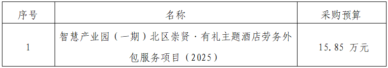 一、采購(gòu)項(xiàng)目名稱:智慧產(chǎn)業(yè)園(一期)北區(qū)崇賢·有禮主題酒店勞務(wù)外包服務(wù)項(xiàng)目