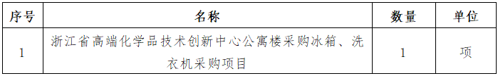 一、采購項(xiàng)目名稱:浙江省高端化學(xué)品技術(shù)創(chuàng)新中心公寓樓采購冰箱、洗衣機(jī)采購項(xiàng)目