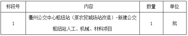 二、項目名稱:衢州公交中心樞紐站(原農(nóng)貿(mào)城場站改造)-新建公交樞紐站人工、機械、材料項目