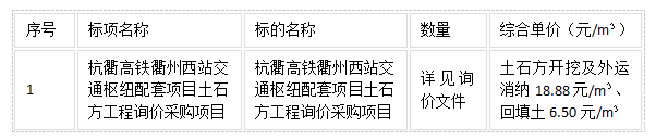 二、項目名稱:杭衢高鐵衢州西站交通樞紐配套項目土石方工程詢價采購項目