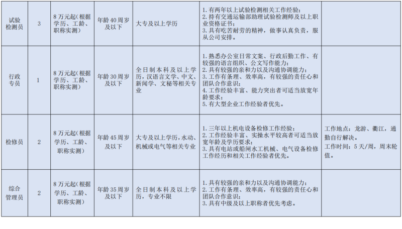1.投融資主管崗位、試驗(yàn)檢測(cè)員崗位、檢修員崗位應(yīng)聘者通過資格審查可直接進(jìn)入面試。