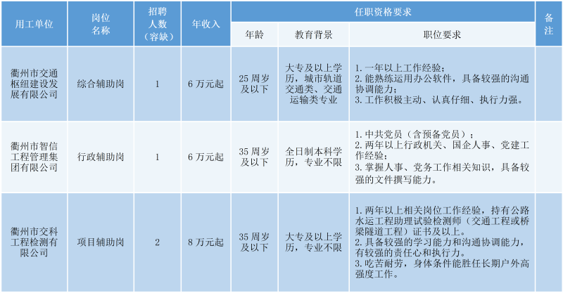 衢州衢通控股集團(tuán)有限公司因工作需要,現(xiàn)面向社會(huì)公開(kāi)招聘4名勞務(wù)派遣人員,具體內(nèi)容公告如下: