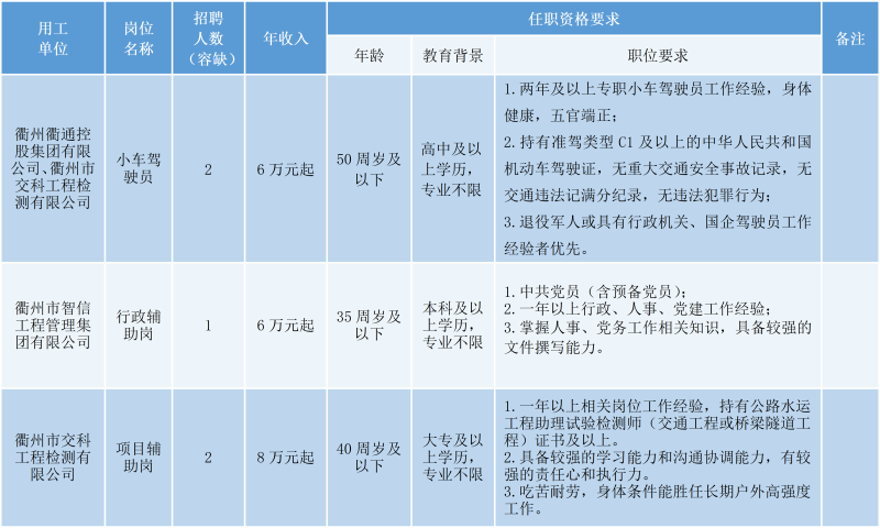 衢州衢通控股集團(tuán)有限公司因工作需要,現(xiàn)面向社會(huì)公開(kāi)招聘5名勞務(wù)派遣工作人員。具體事項(xiàng)公告如下: