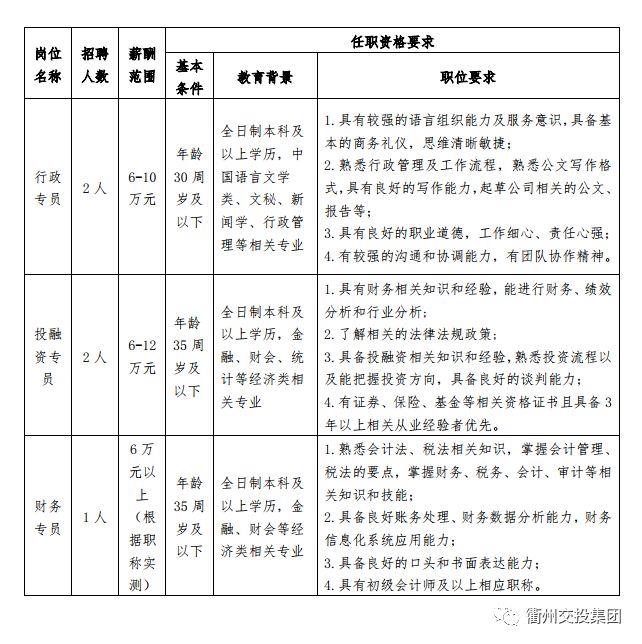 (一)衢州市交通投資集團有限公司招聘崗位與人數(shù)見下表: