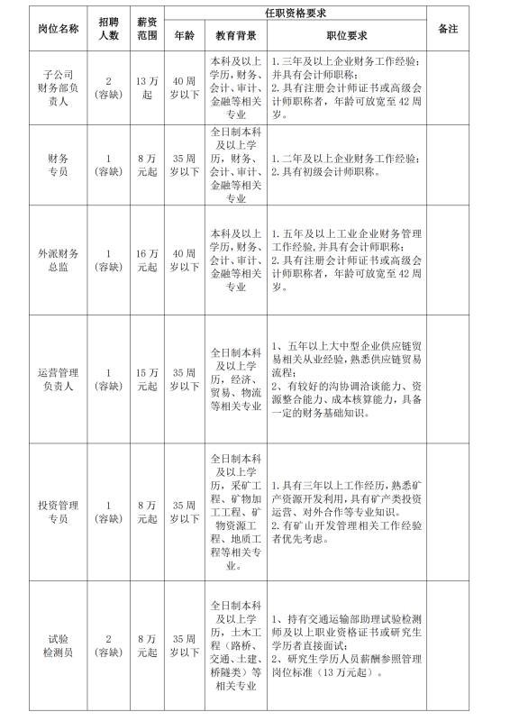 根據(jù)集團(tuán)發(fā)展需要,現(xiàn)面向社會(huì)公開(kāi)招聘16名工作人員,具體工作單位由集團(tuán)根據(jù)工作需要,在集團(tuán)本部和全資子公司之間統(tǒng)籌安排。具體招聘事項(xiàng)公告如下:
