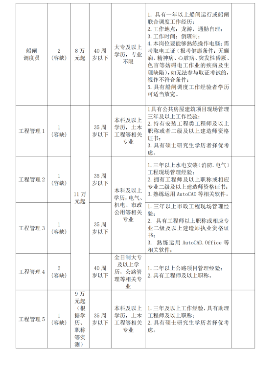 一、招聘崗位及條件