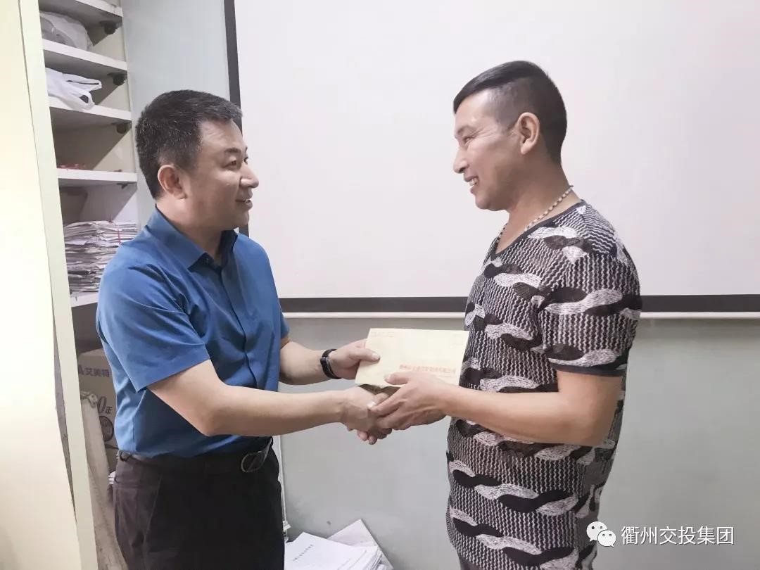 9月25日上午,市交投集團董事長兼總經(jīng)理方世忠對23日傍晚在西安門大橋見義勇為的公交司機陳泉壽進行了走訪慰問,并給予了獎勵。方世忠表示,公交駕駛員陳泉壽這次見義勇為的行為,是弘揚“衢州有禮”正能量的體現(xiàn),是“衢州有禮”落實在日常的先行表率。